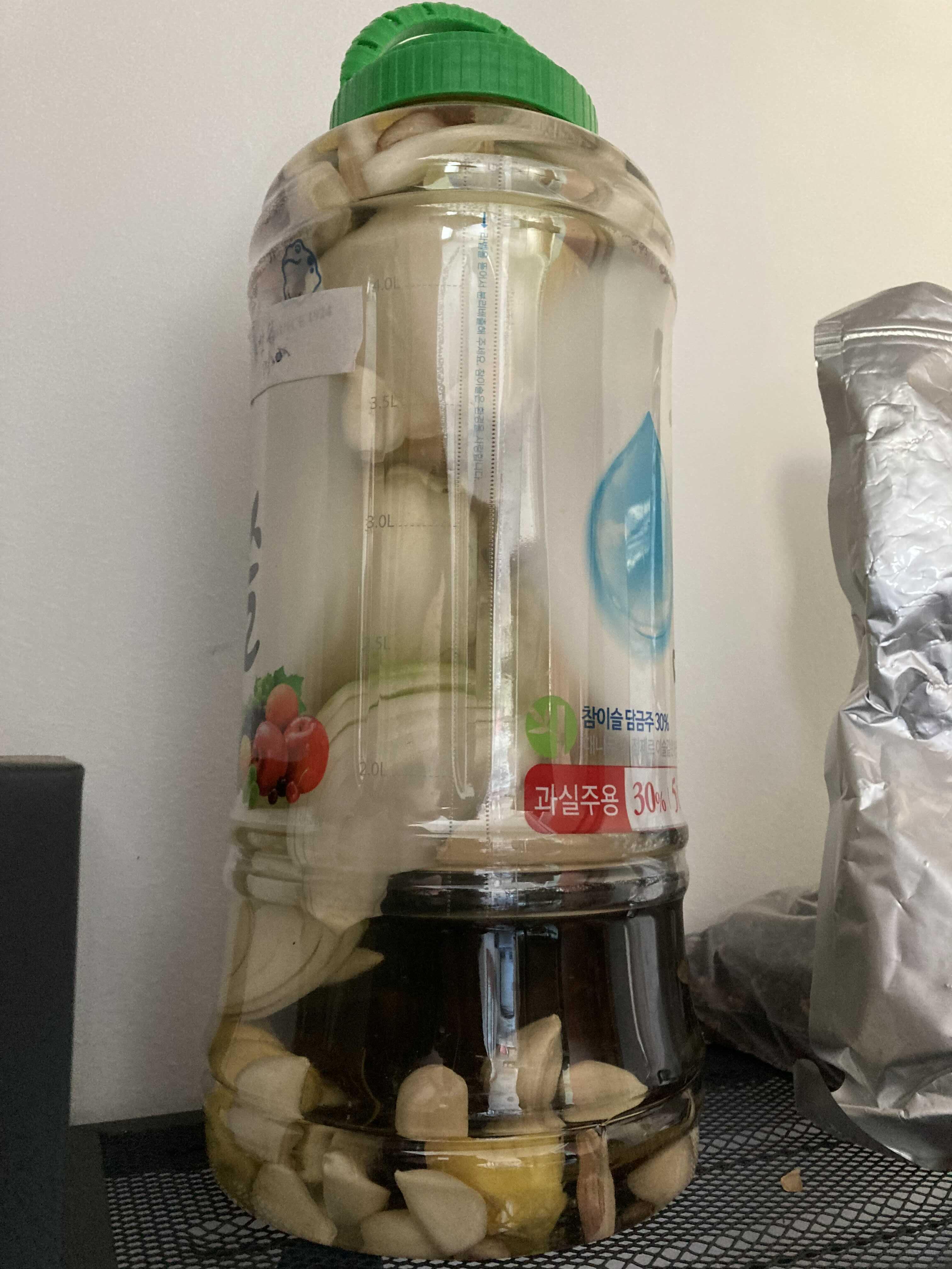 술은 집에있던 먹다 남은술(보드카 소주등등)과 담금주 5L로 총 6L정도 만들었다 한달후에 사용가능하다