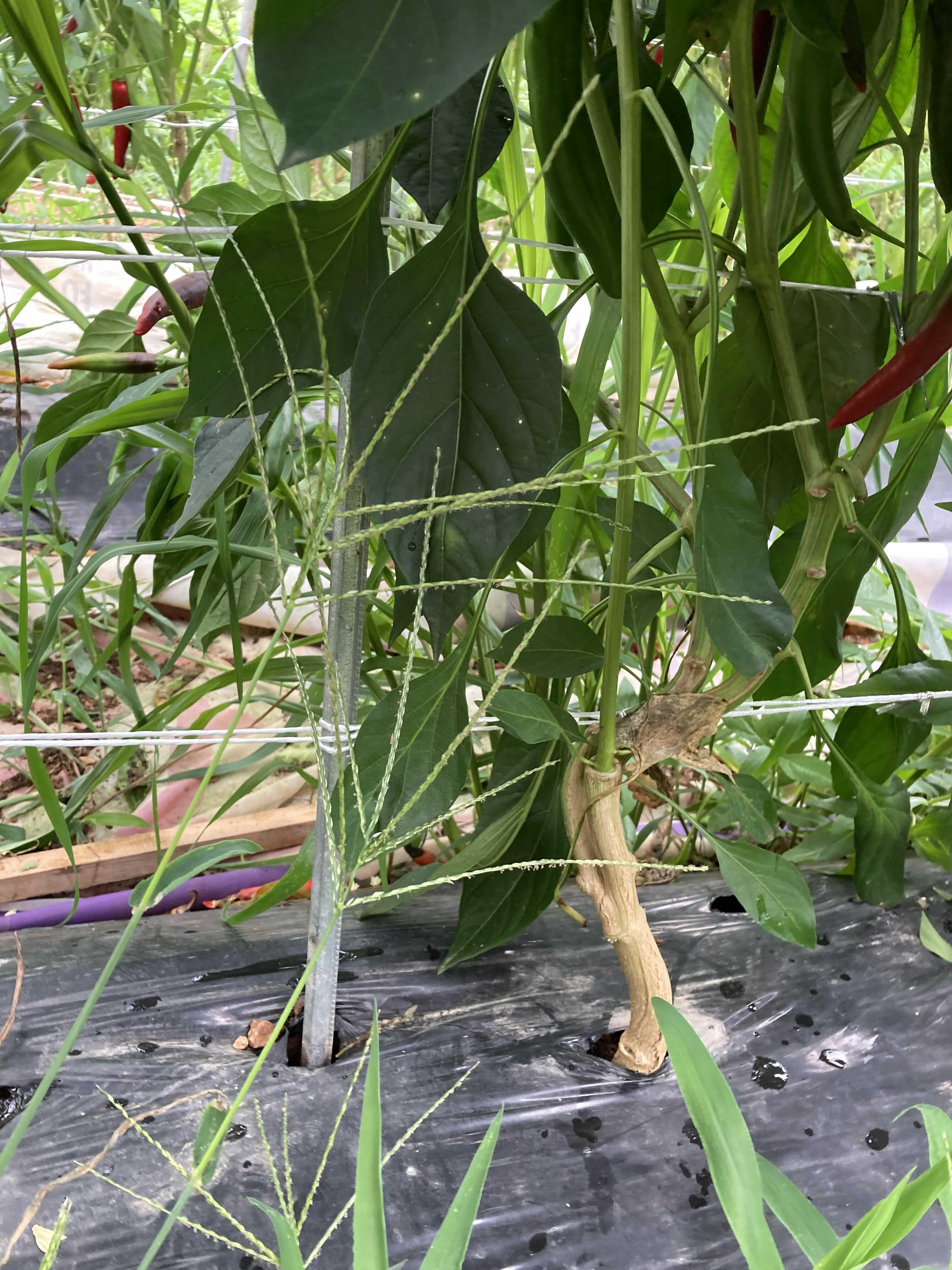 쓰러진 고추대 다시 보강했다.