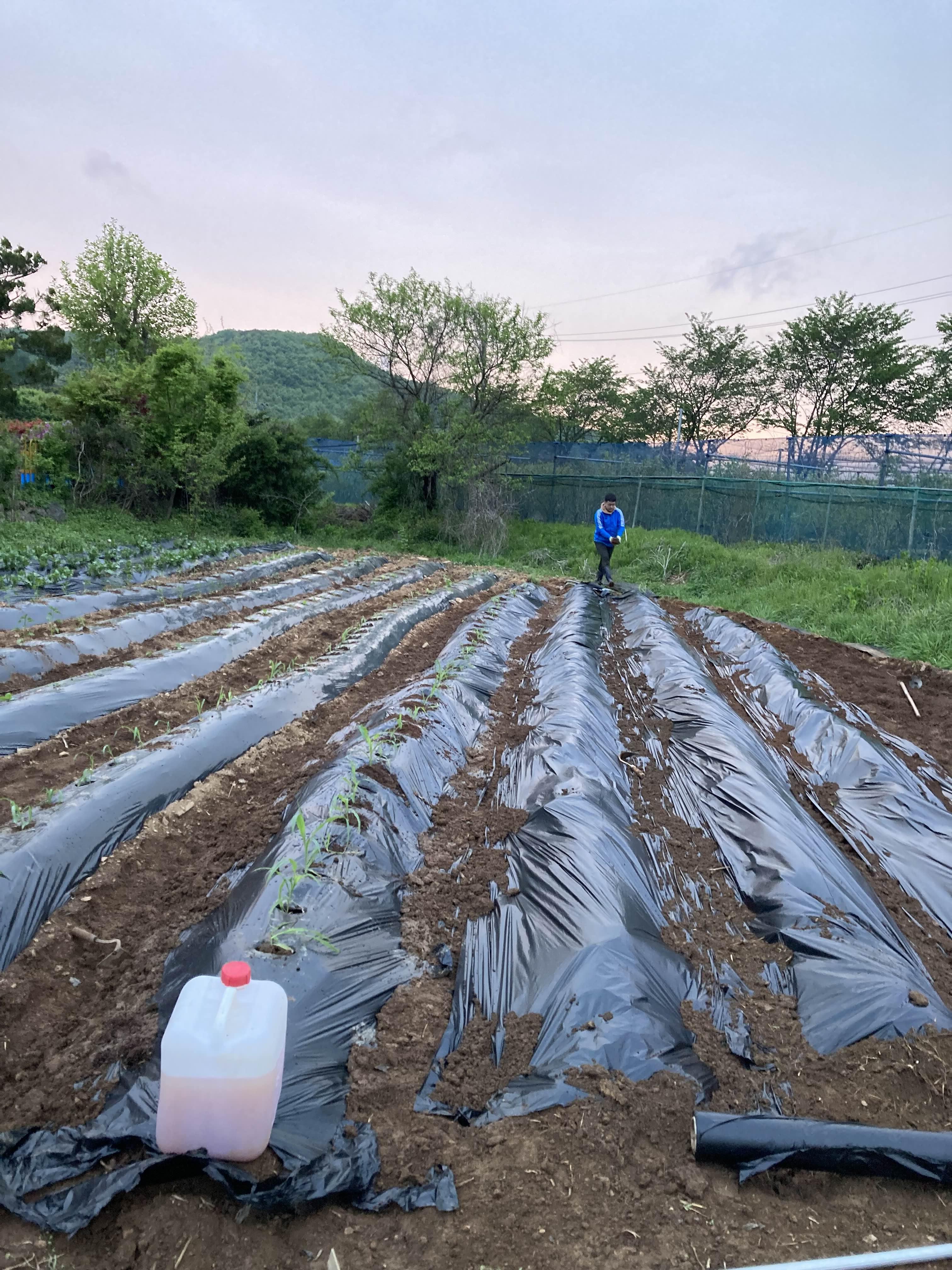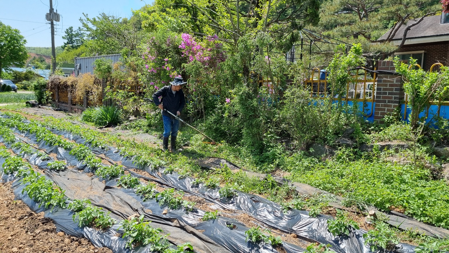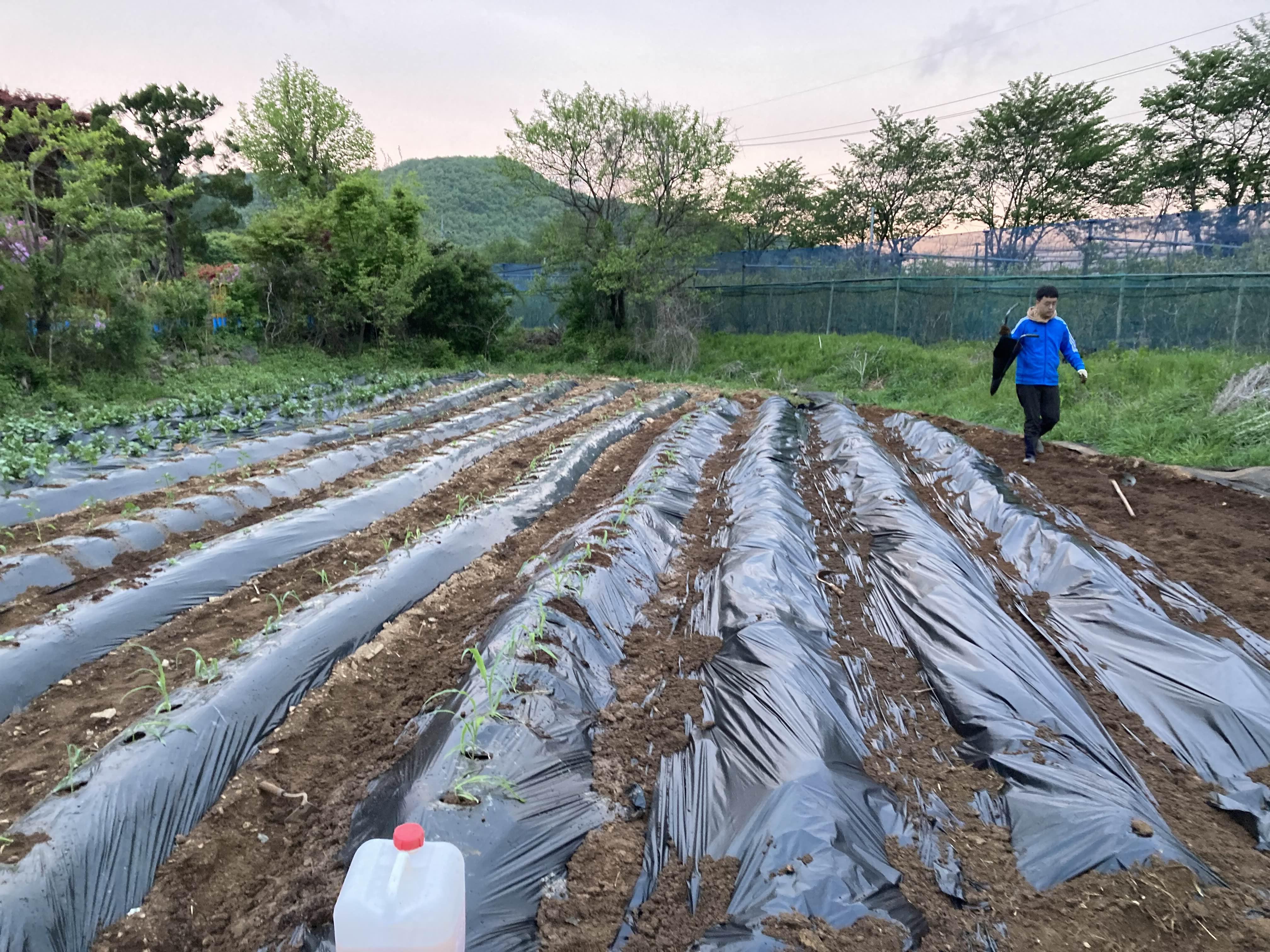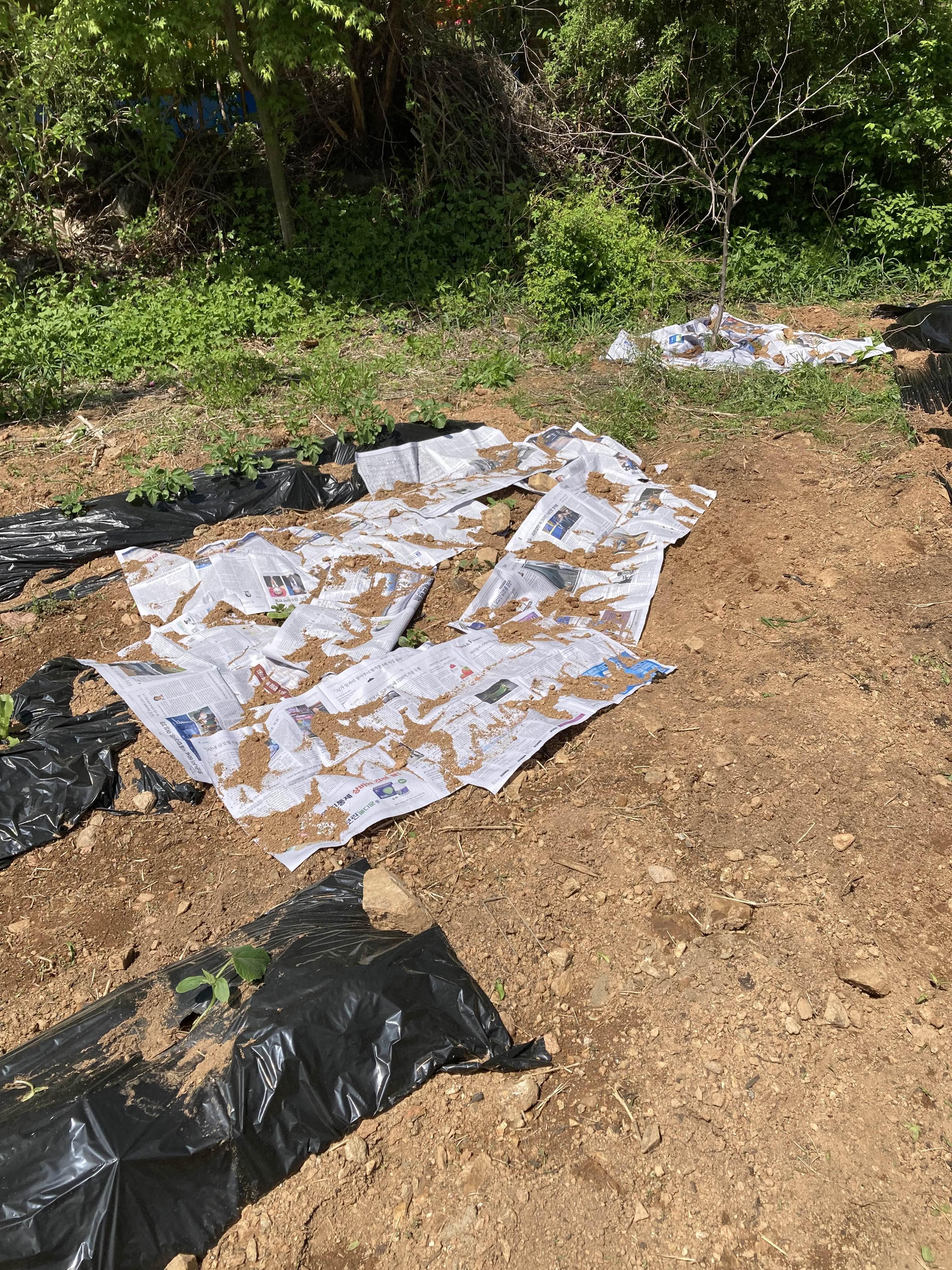 삽질해서 흙 올리고 멀칭 씨우고를 반복해서 밭을 정리하는 것이다.