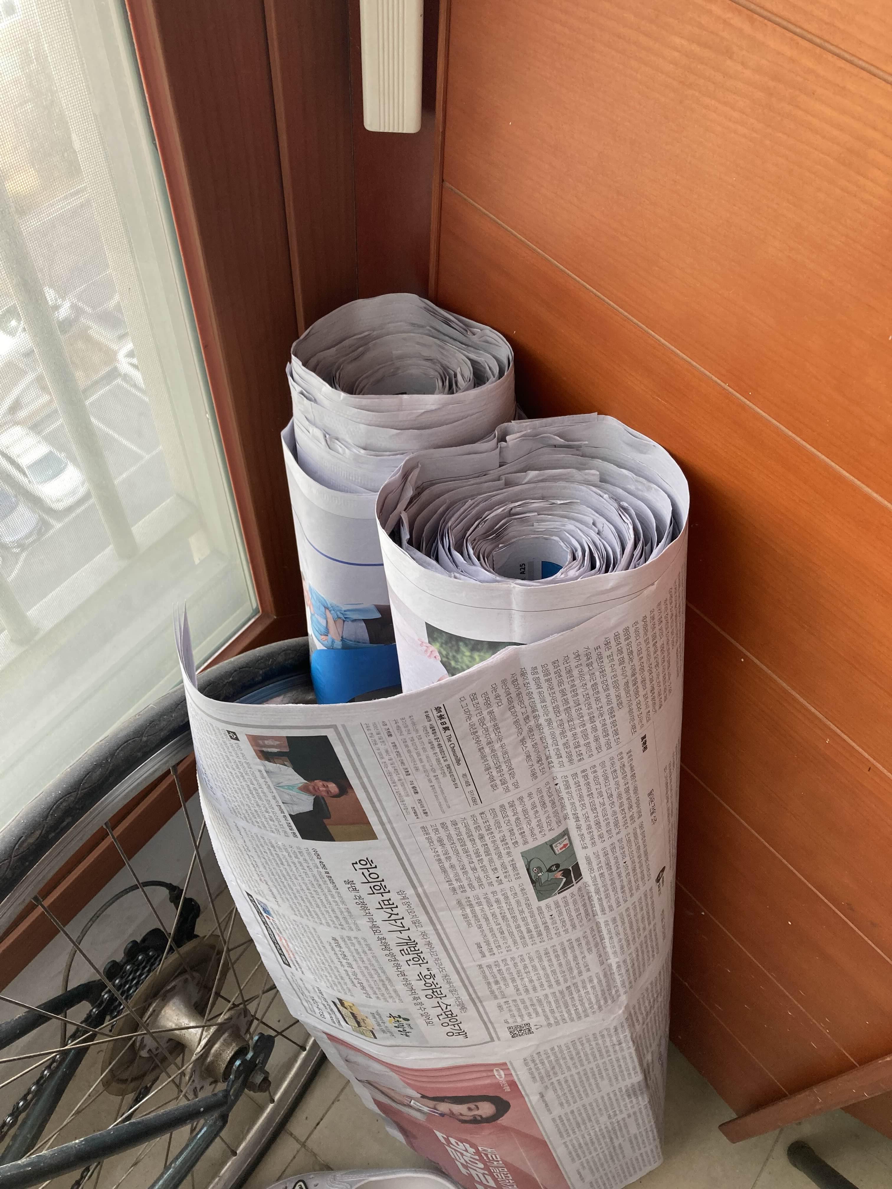 신문지는 아파트 분리수거할때 좀 가져왔다.