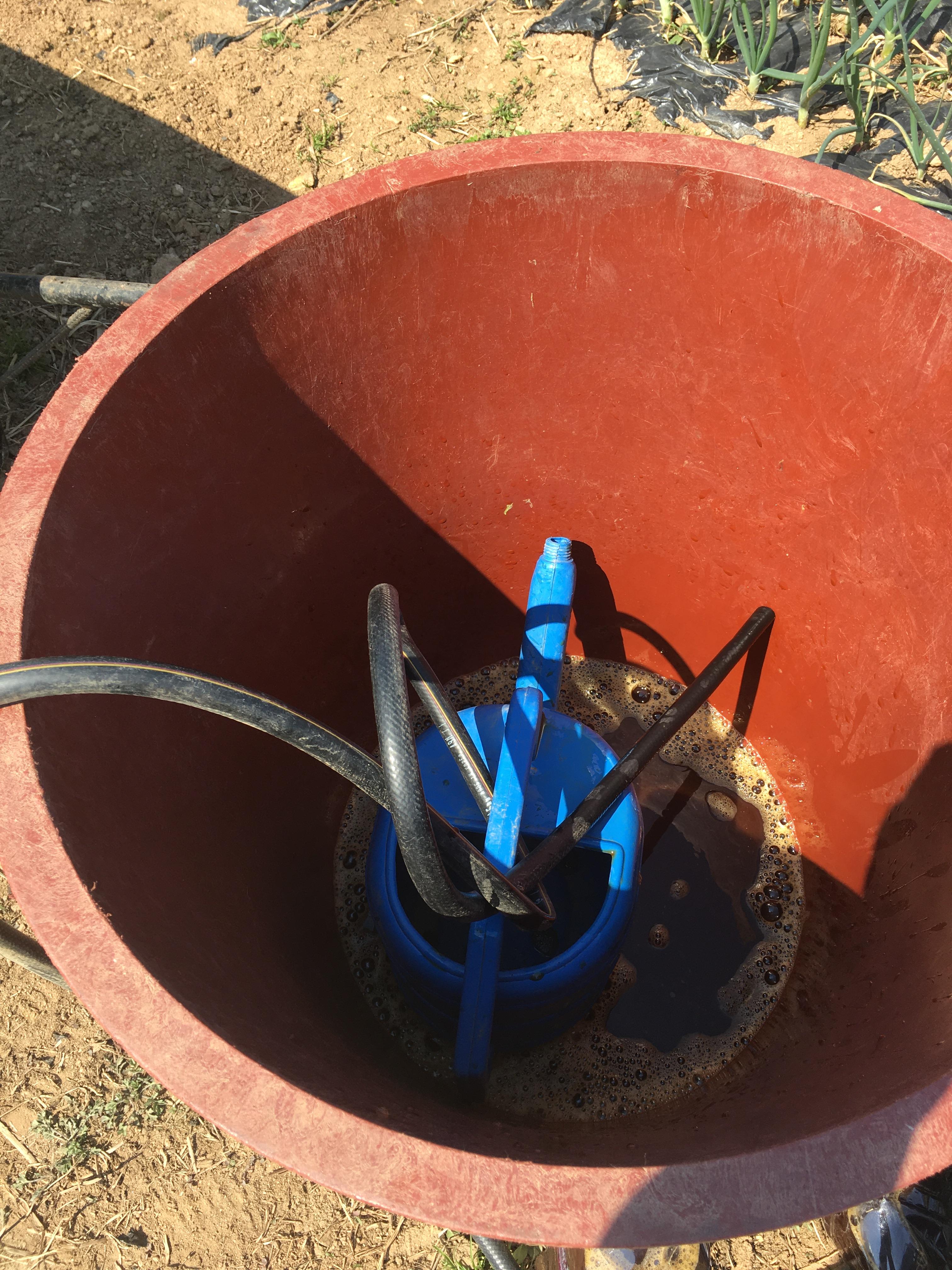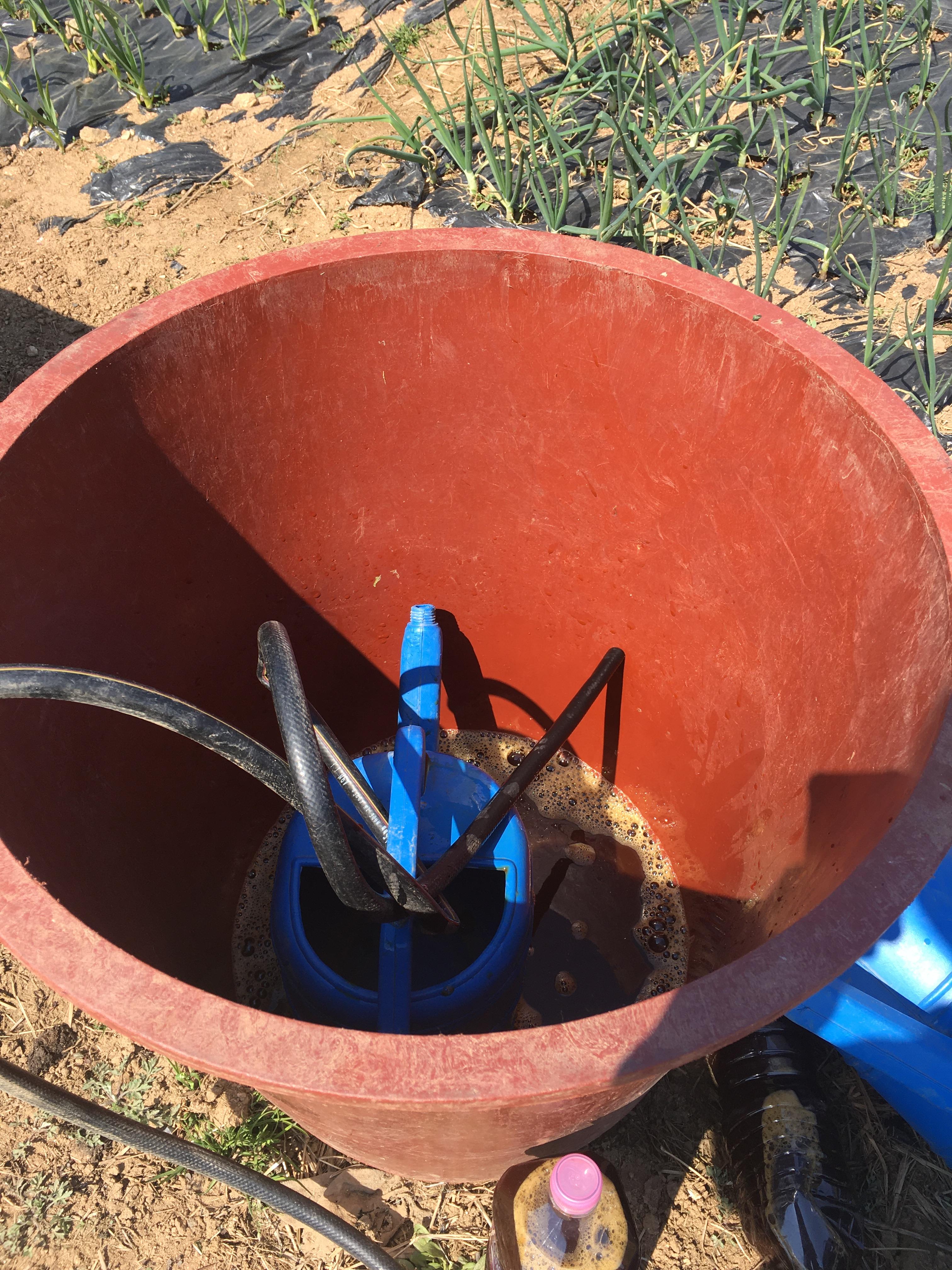 물 100L에 em효소 2L 혼합하여 조리로 준다.
