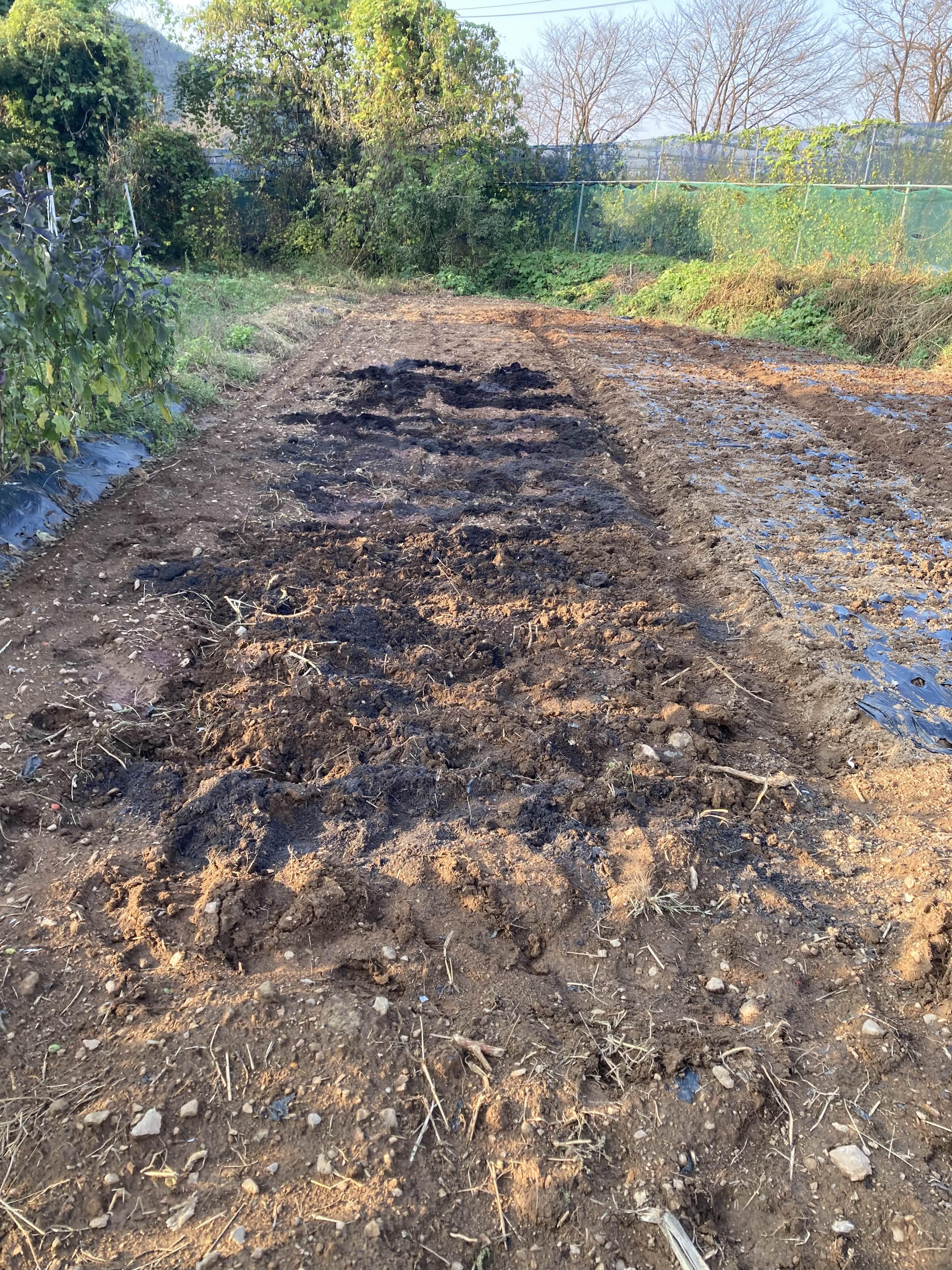 이런...부랴부랴 옆집에서 퇴비 3개 빌려와 양파밭 자리 만들고 나니 비료도 떨어졌네?