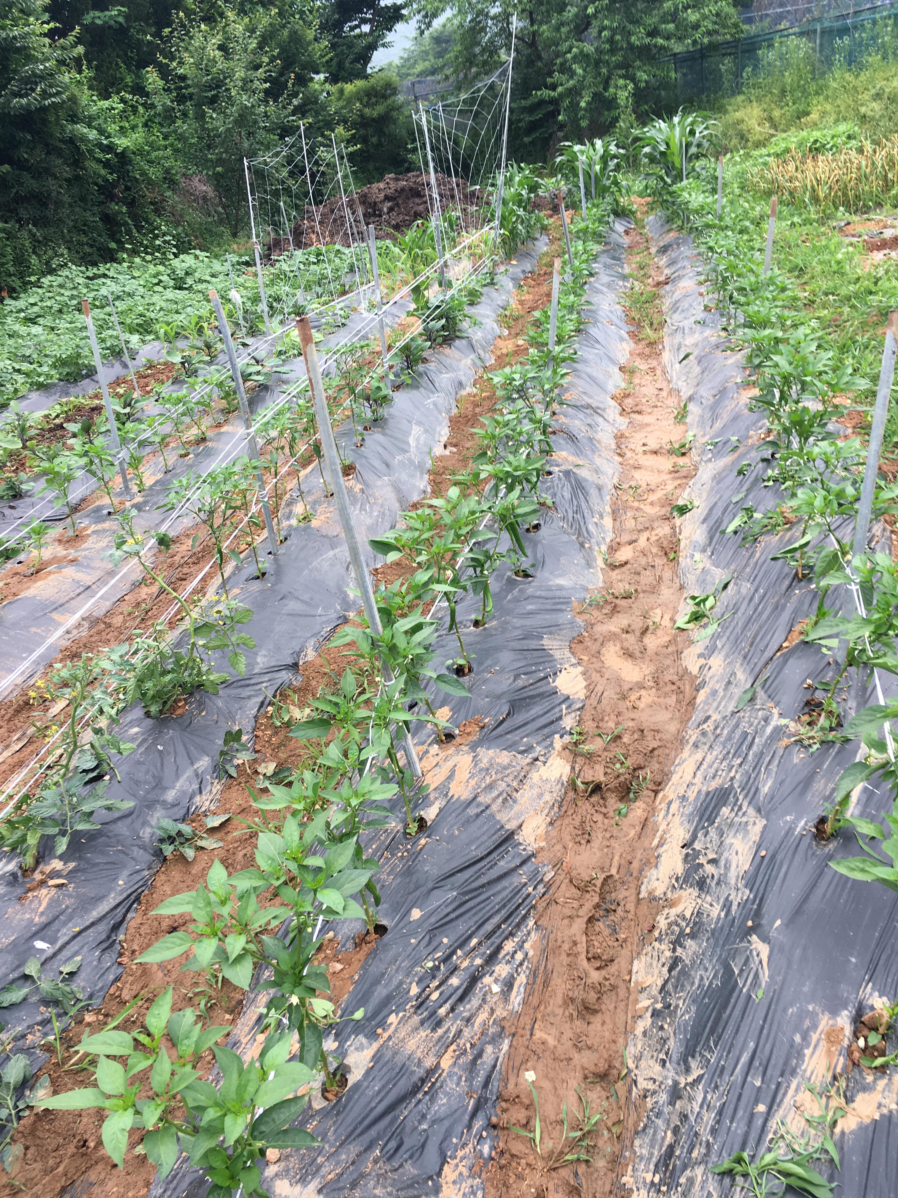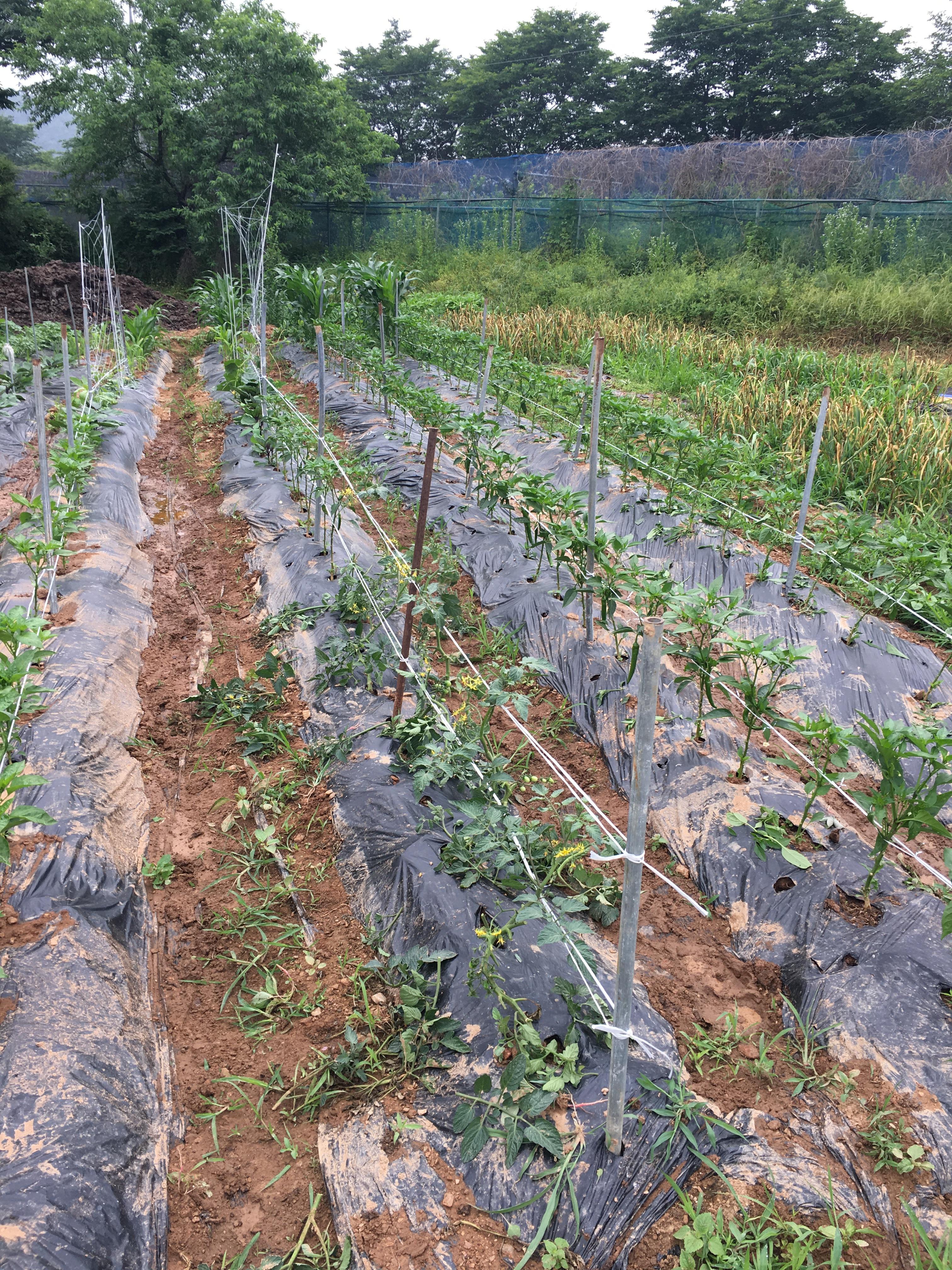 고추지주대에 고추끈 매줬다.